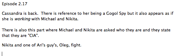 Powraca Cassandra. Pojawia się nawiązanie do tego, że może być ona szpiegiem Gogola, jednak jednocześnie wygląda na to, że współpracuje z Michaelem i Nikitą.